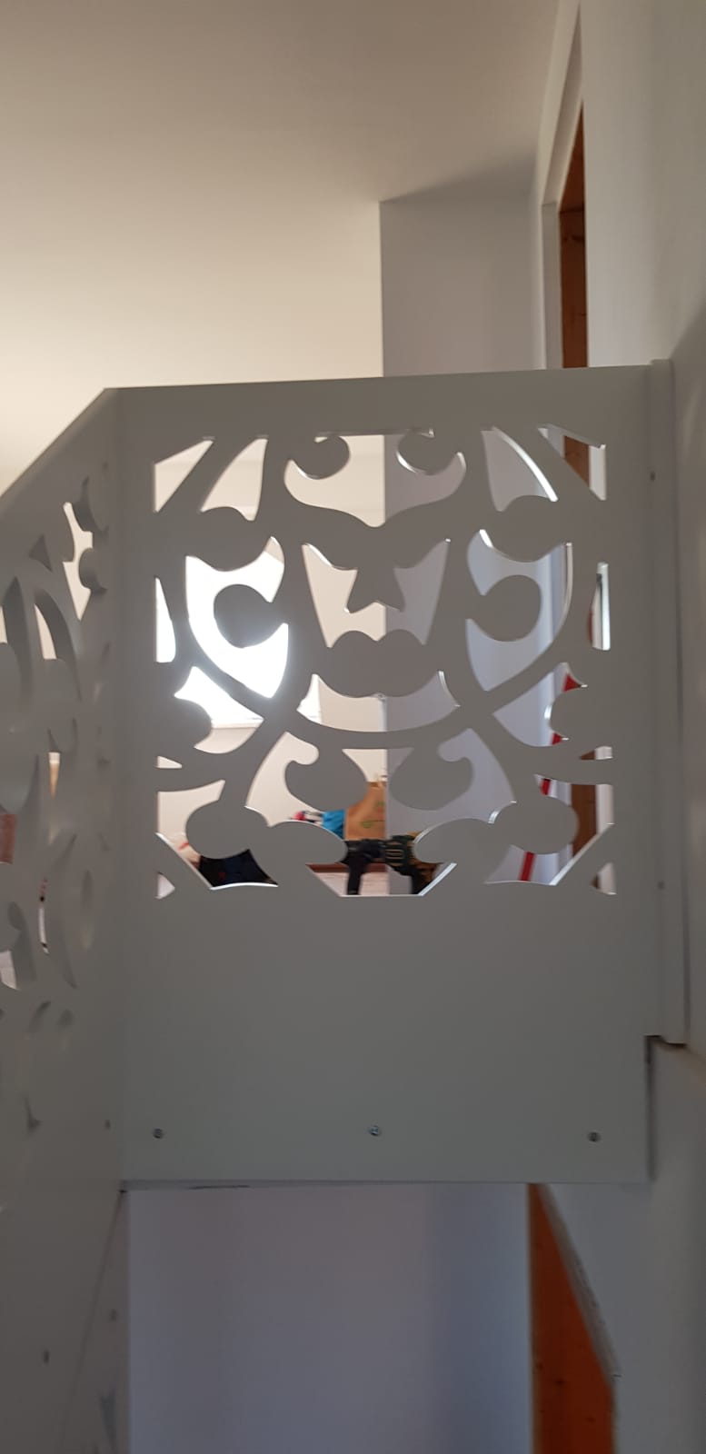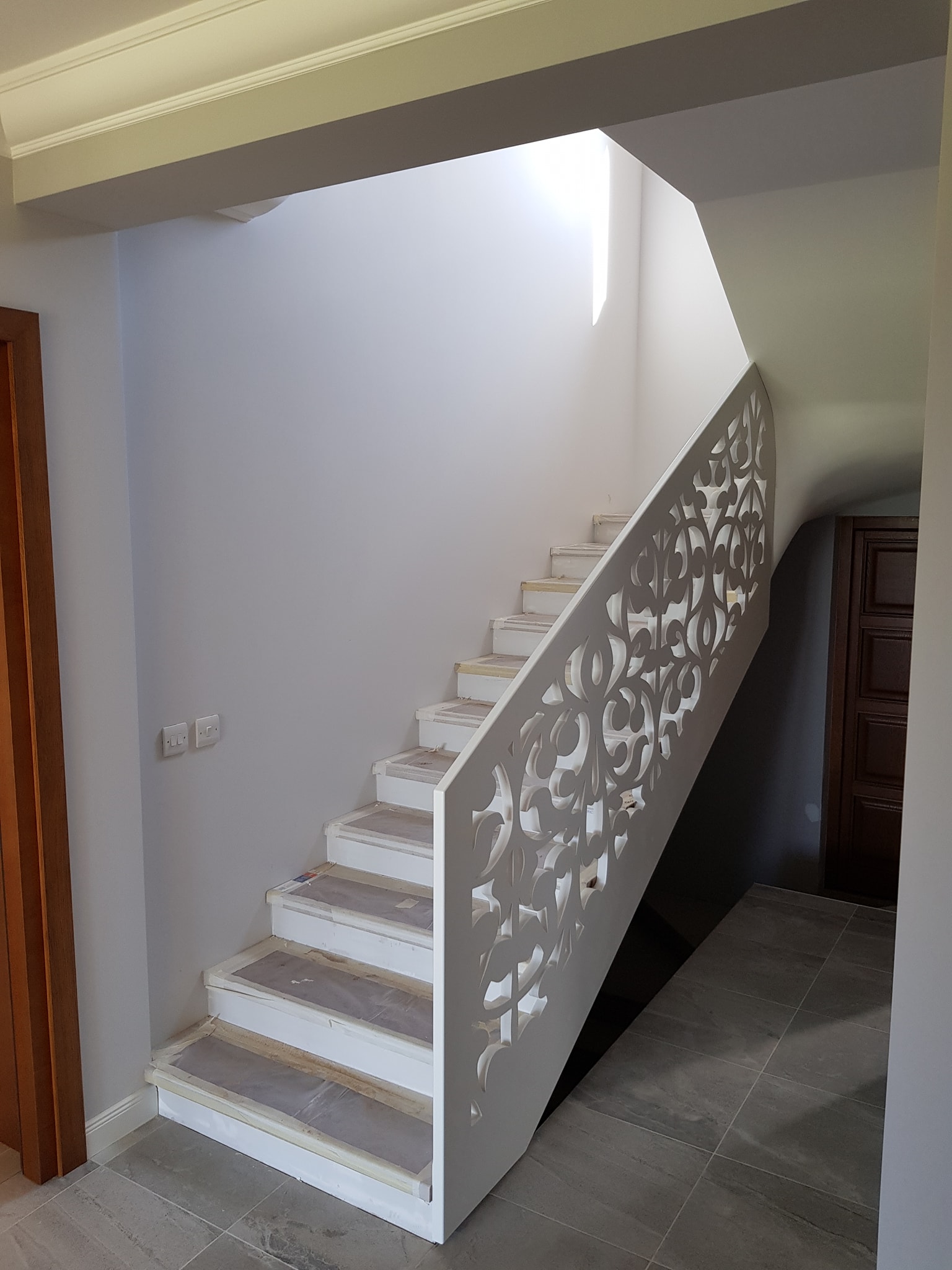 Balustrada Ornamentala din MDF vopsit, culoare la alegere din paletarul RAL. Extracost se aplica pentru culorile metalizate, combinatiile de culori si MDF furniruit.