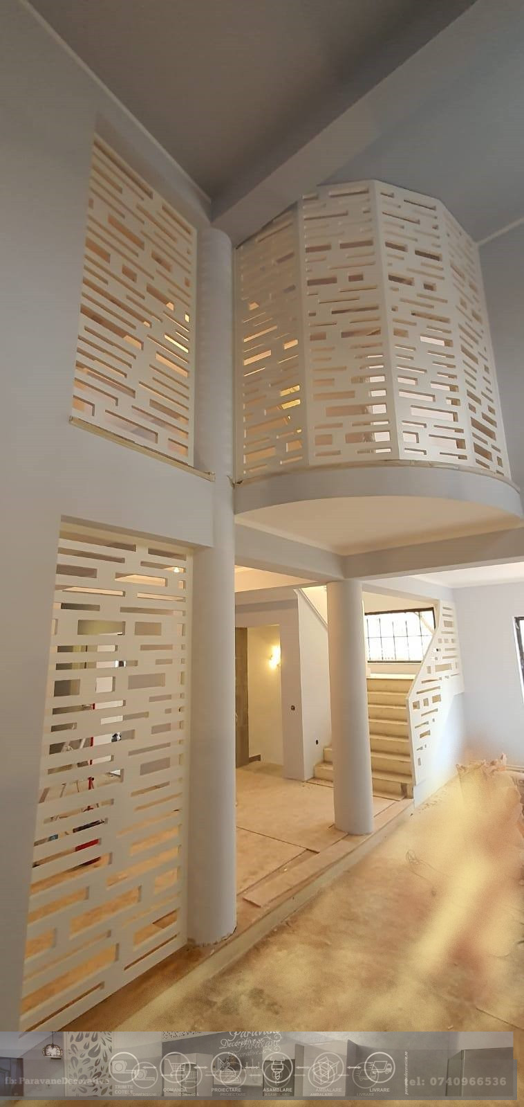 Balustrada Ornamentala pana in tavan tip paravan din material MDF vopsit - Model Dreptunghiuri