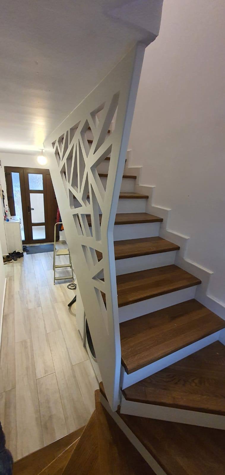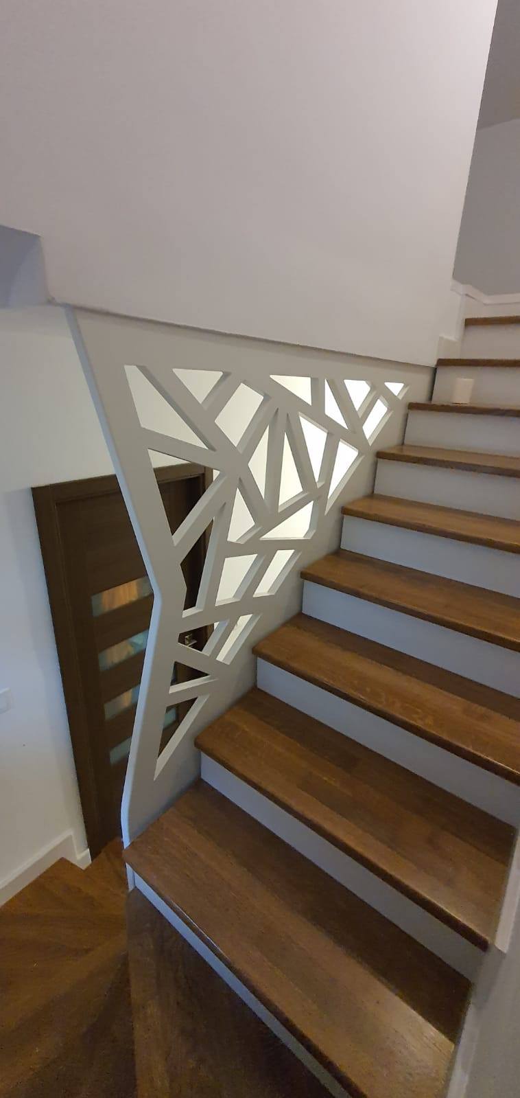 Balustrada Ornamentala din MDF vopsit, culoare la alegere din catalogul de culori RAL. Extracost se aplica pentru culorile metalizate, combinatiile de culori sau MDF furniruit.