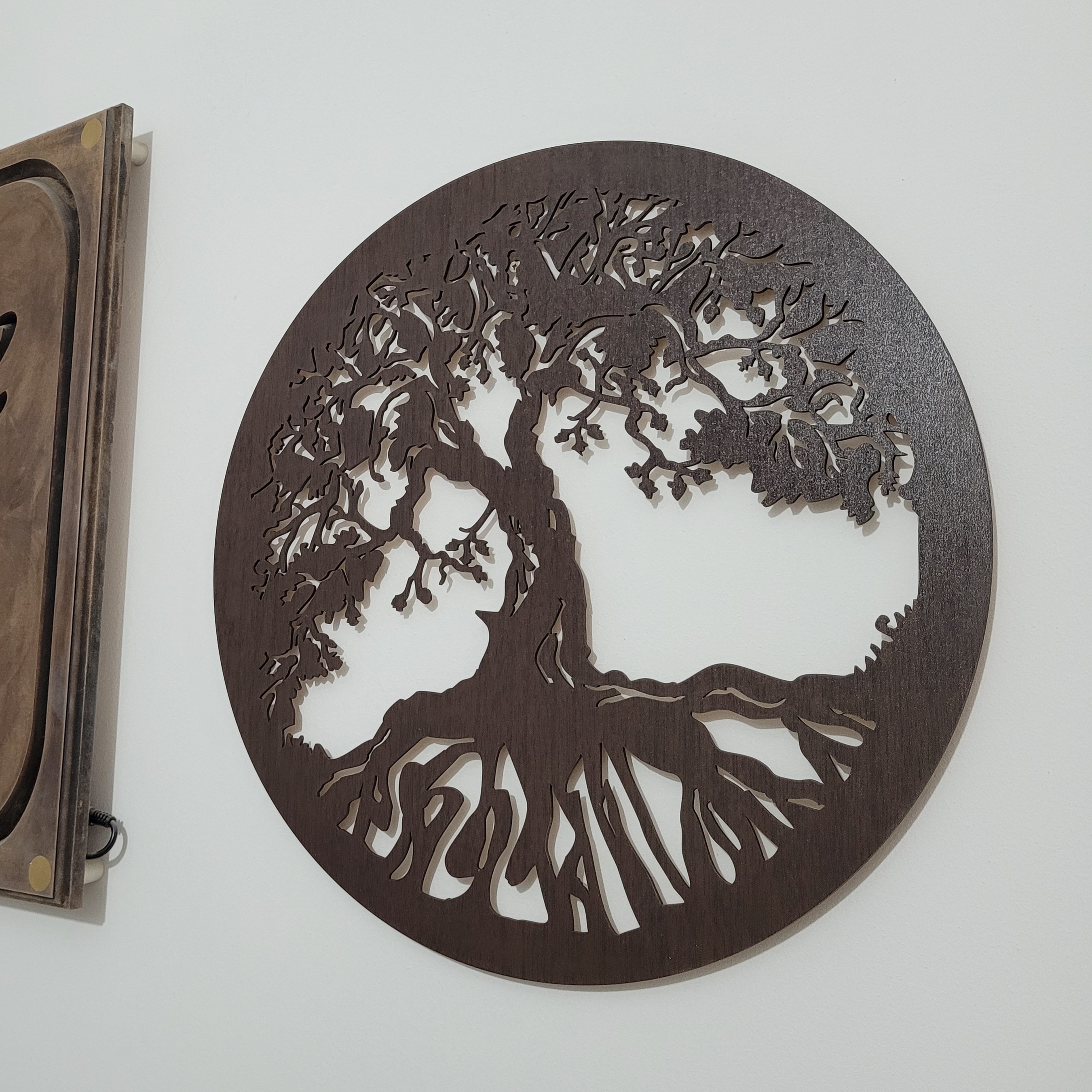 Decoratiune – "Copacul Vietii". Este realizata din material HDF, nuanta: Wenghe . Dimensiuni: 40cm x 40cm