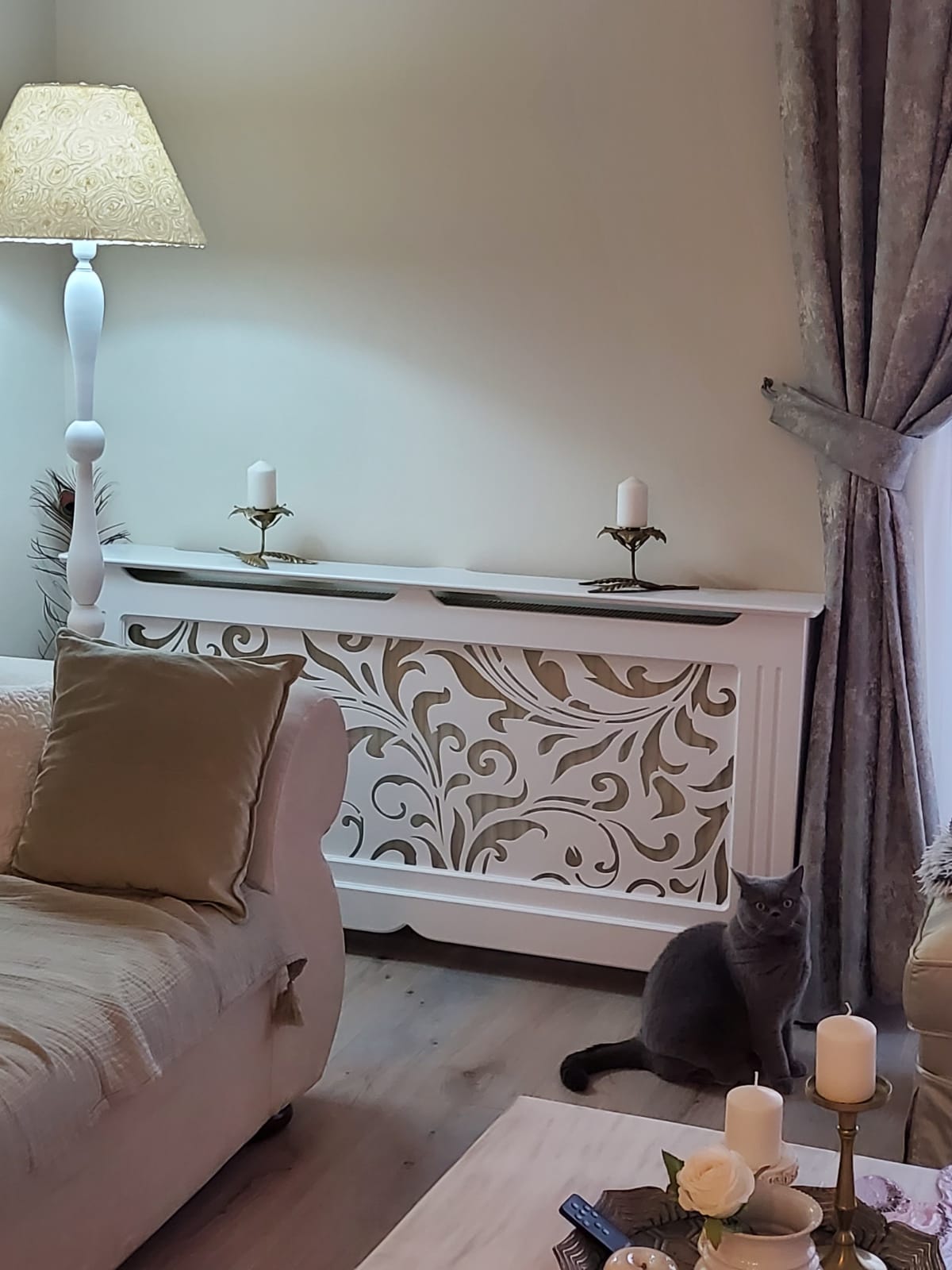 Masca de calorifer din MDF vopsit alb, culoare la alegere din catalogul de culori RAL. Extracost se va aplica pentru culorile speciale, cele metalizate, combinatiile de culori si MDF furniruit.