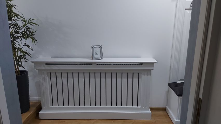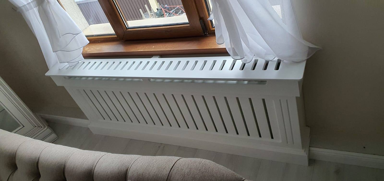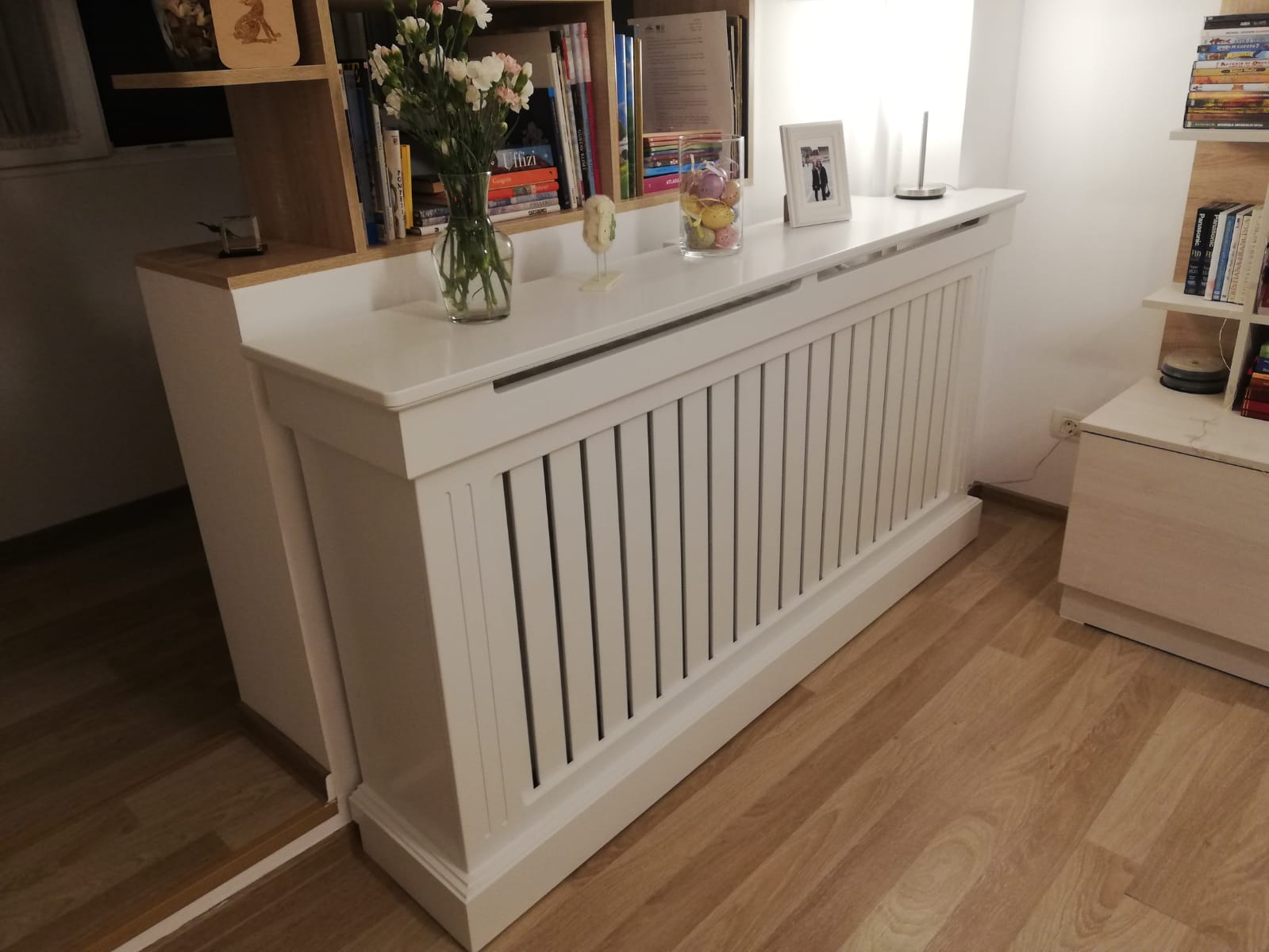 Masca de calorifer din MDF vopsit, culoare la alegere din catalogul de culori RAL. Extracost se va aplica pentru culorile speciale, metalizate, pentru combinatiile de culori si pentru MDF furniruit.