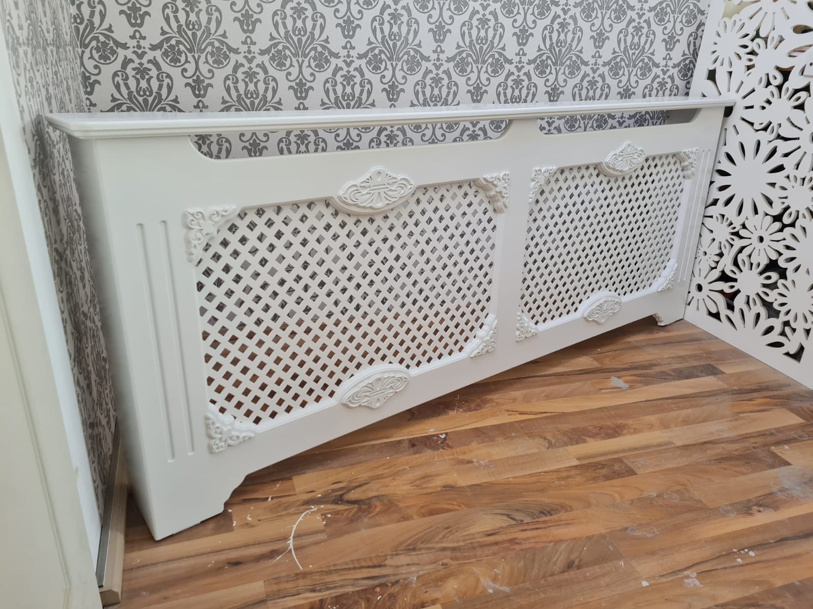 Masca de calorifer din material MDF vopsit, cu picior drept si aplicatii ornamentale. LICHIDARE DE STOC!