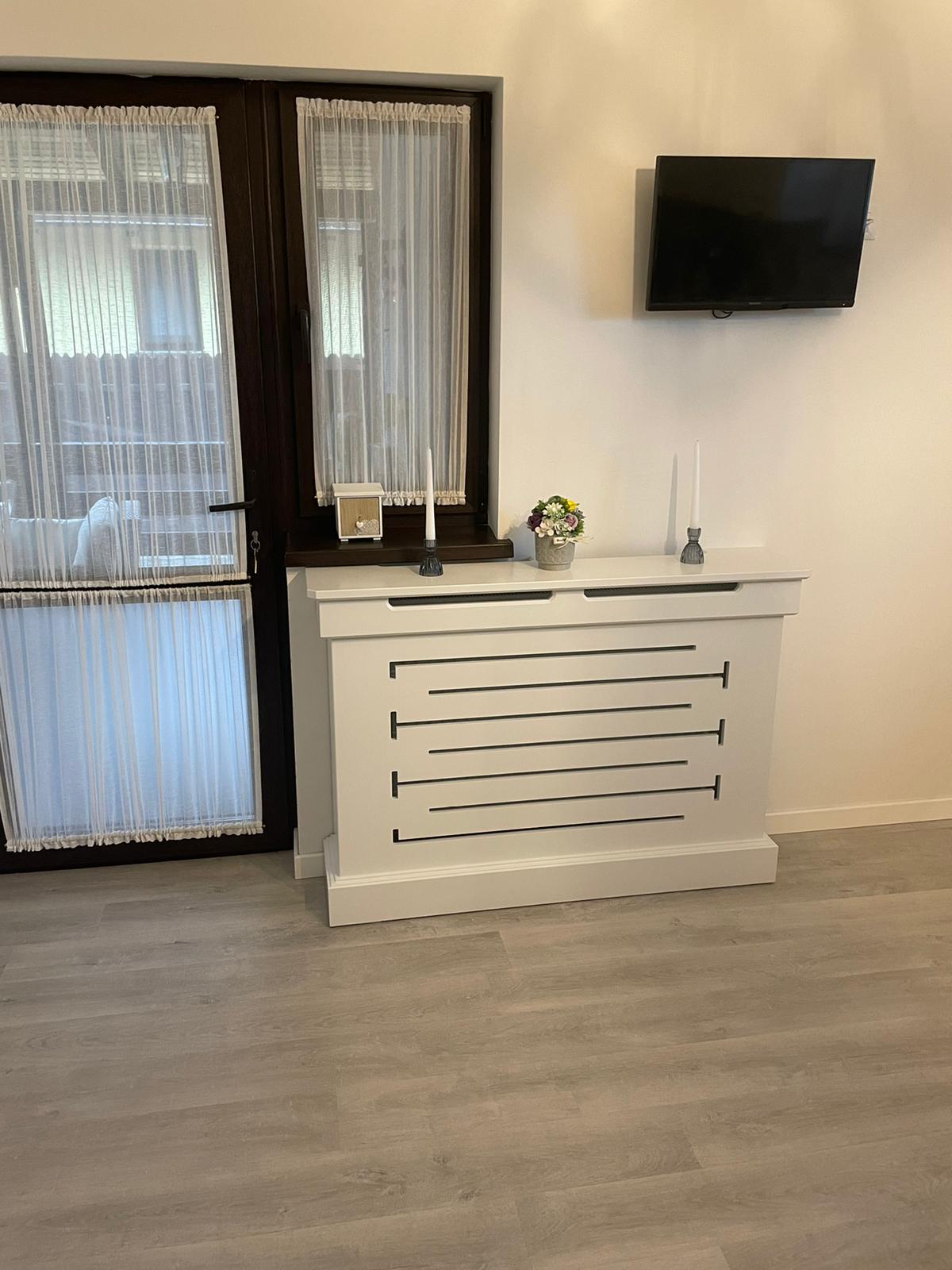 Masca de calorifer din MDF vopsit, culoare la alegere din paletarul RAL. Extracost se va aplica pentru culorile speciale, cele metalizate, combinatiile de culori si MDF furniruit.