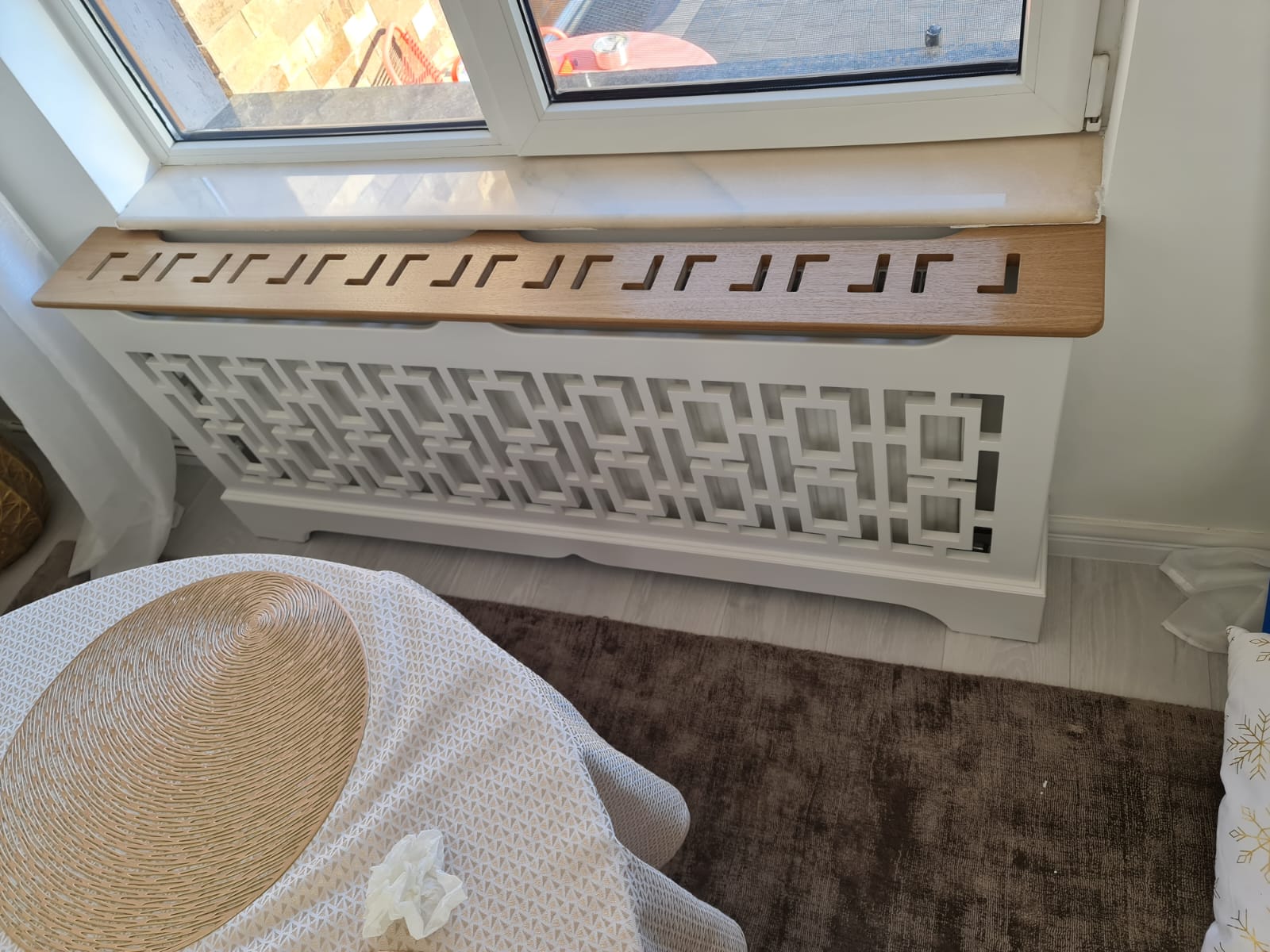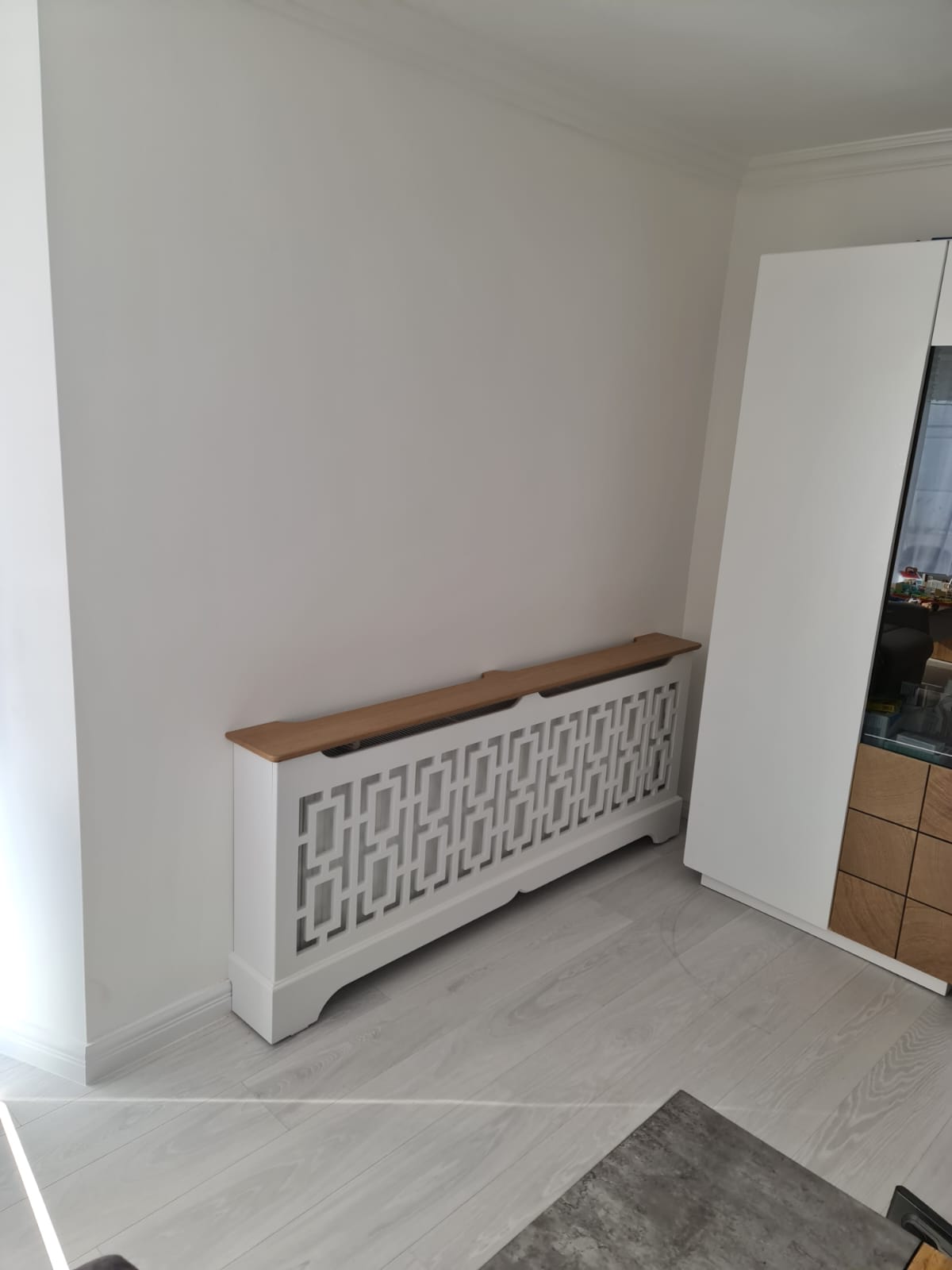 Masca de calorifer cu soclu simplu, din material MDF vopsit si polita din material MDF furniruit - Model Geometric