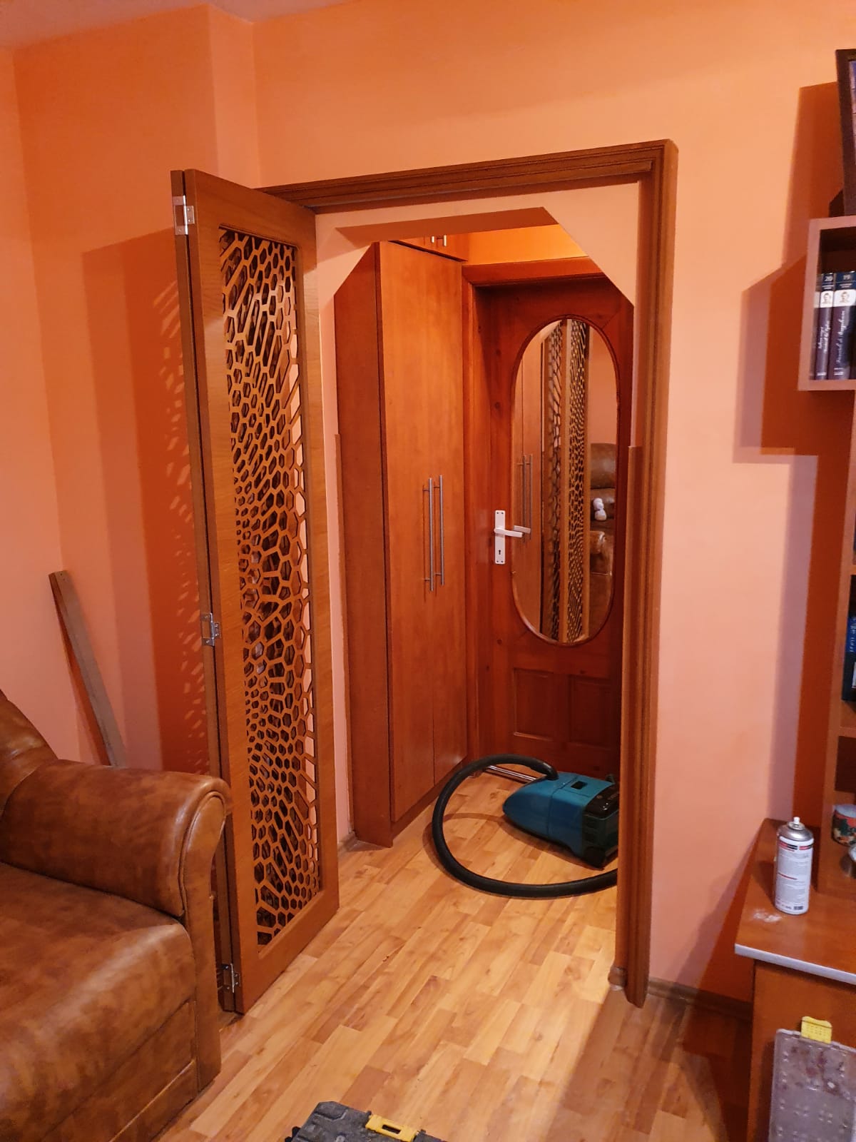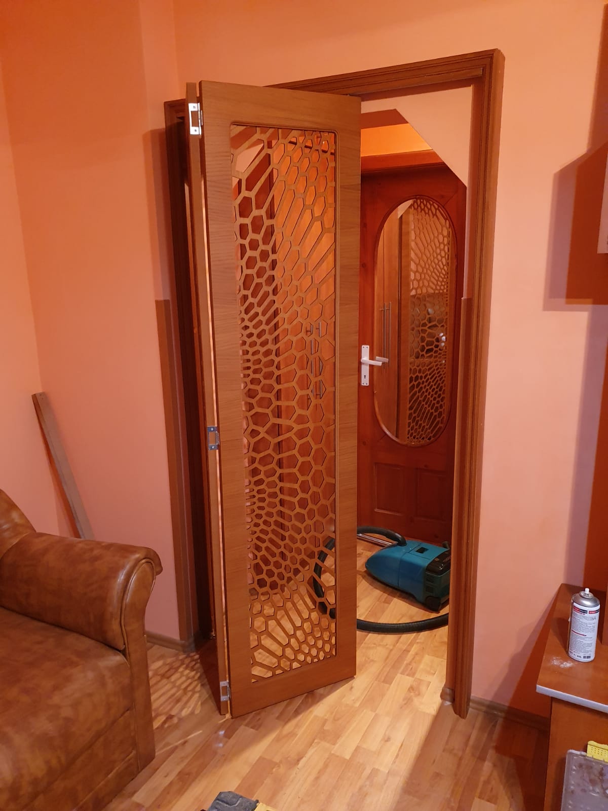 Usi pliabile din MDF furniruit, vopsit cu bait, nuanta la alegere din paletarul RENNER.