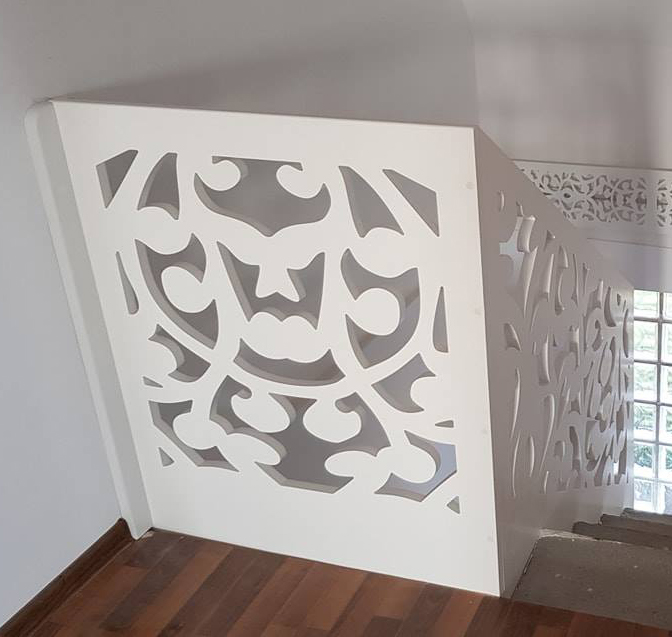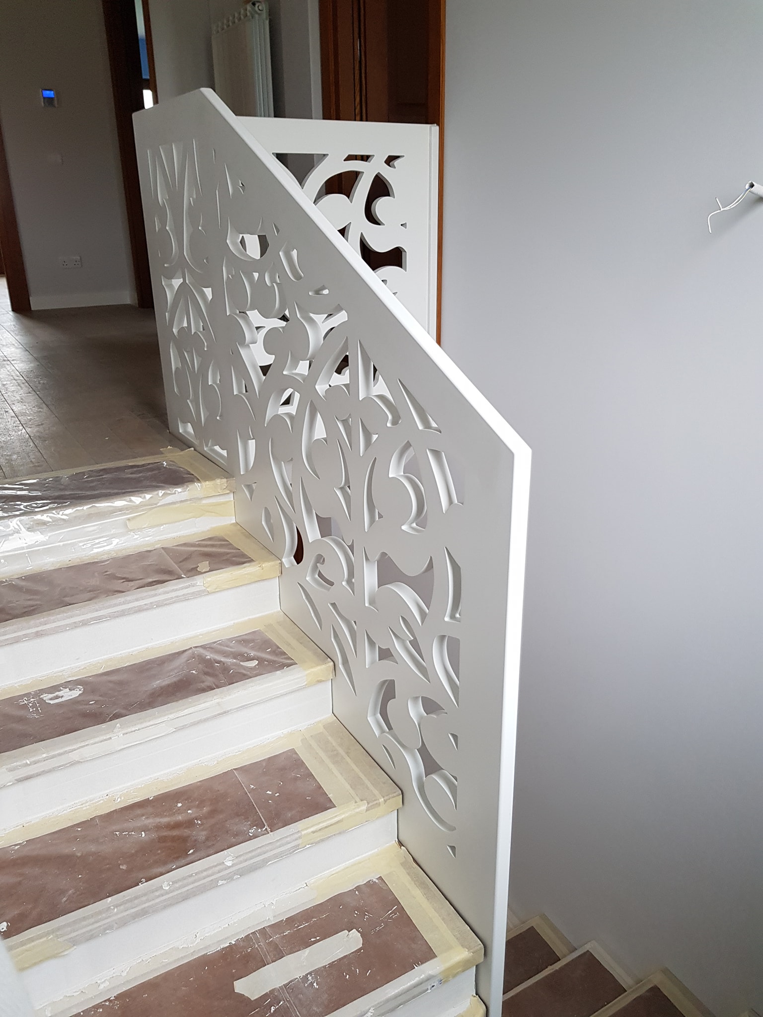 Balustrada Ornamentala din MDF vopsit, culoare la alegere din paletarul RAL. Extracost se aplica pentru culorile metalizate, combinatiile de culori si MDF furniruit.