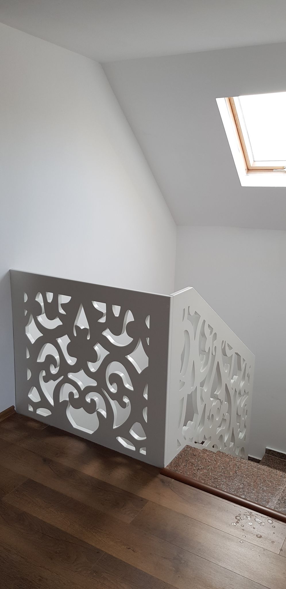 Balustrada Ornamentala din MDF vopsit, culoare la alegere din paletarul RAL. Extracost se va aplica pentru culorile metalizate, combinatiile de culori sau MDF furniruit.