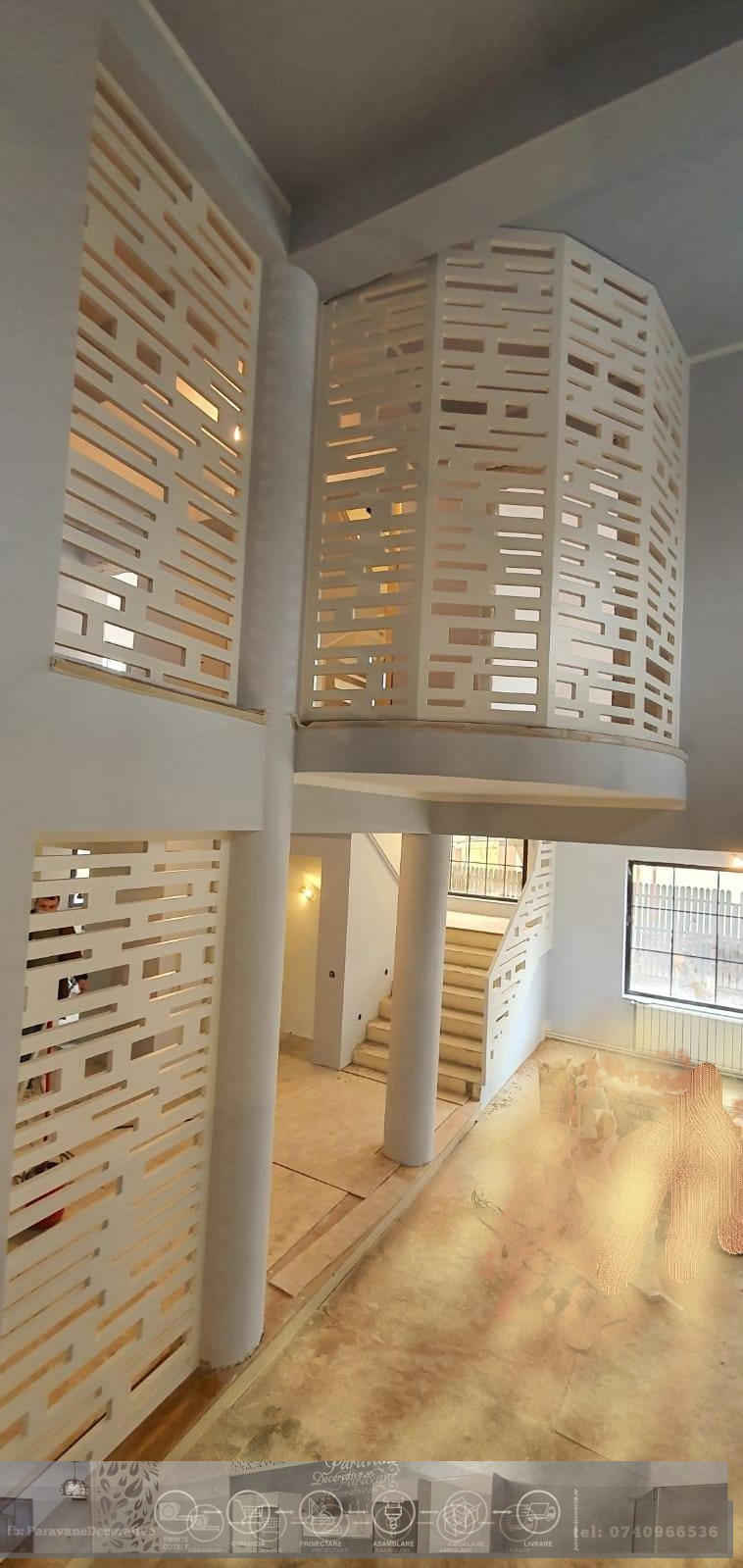 Balustrada Ornamentala pana in tavan tip paravan din material MDF vopsit - Model Dreptunghiuri