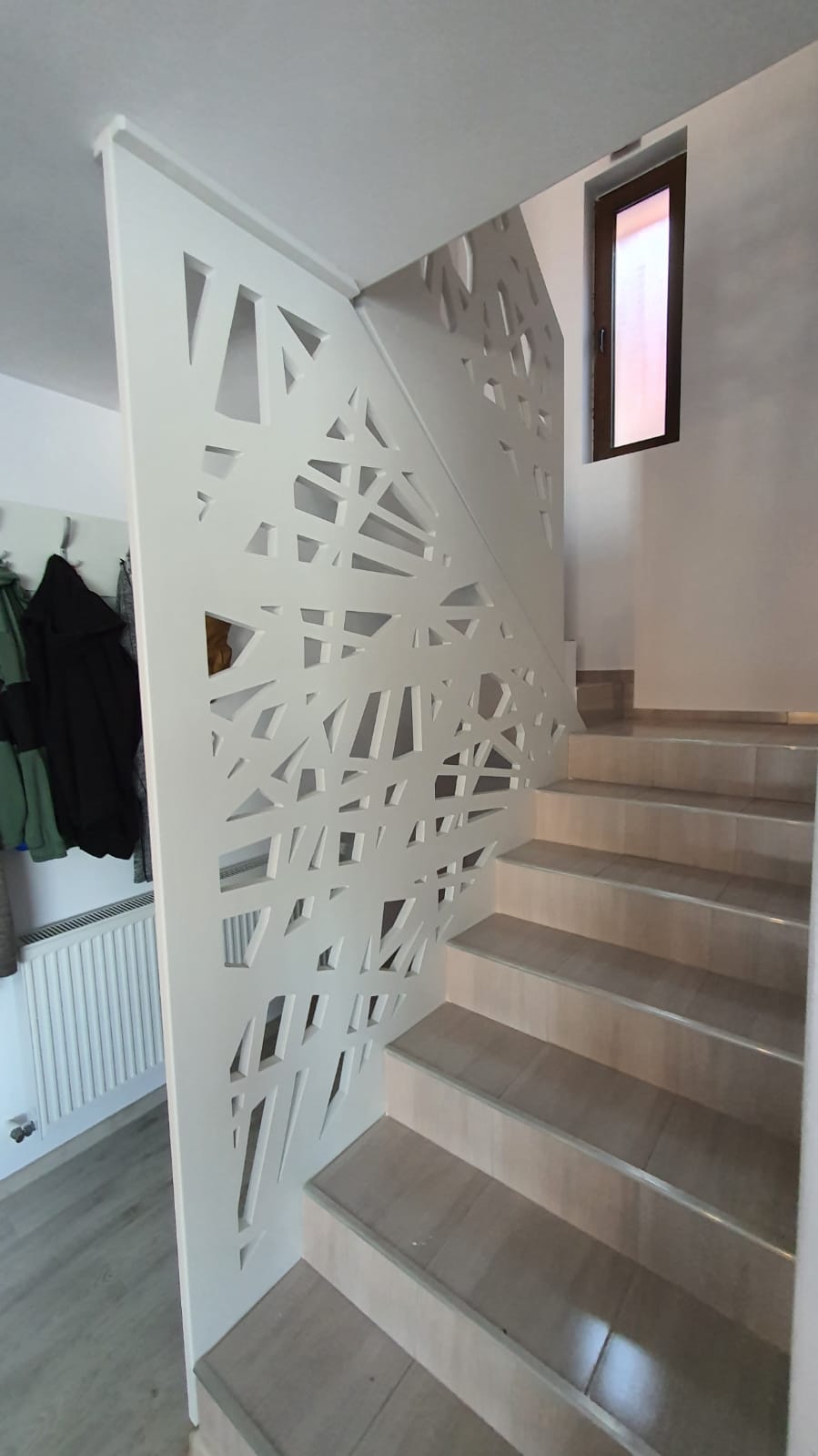 Balustrada Ornamentala din MDF vopsit, culoare la alegere din catalogul de culori RAL. Extracost se aplica pentru culorile metalizate, combinatiile de culori sau MDF furniruit.