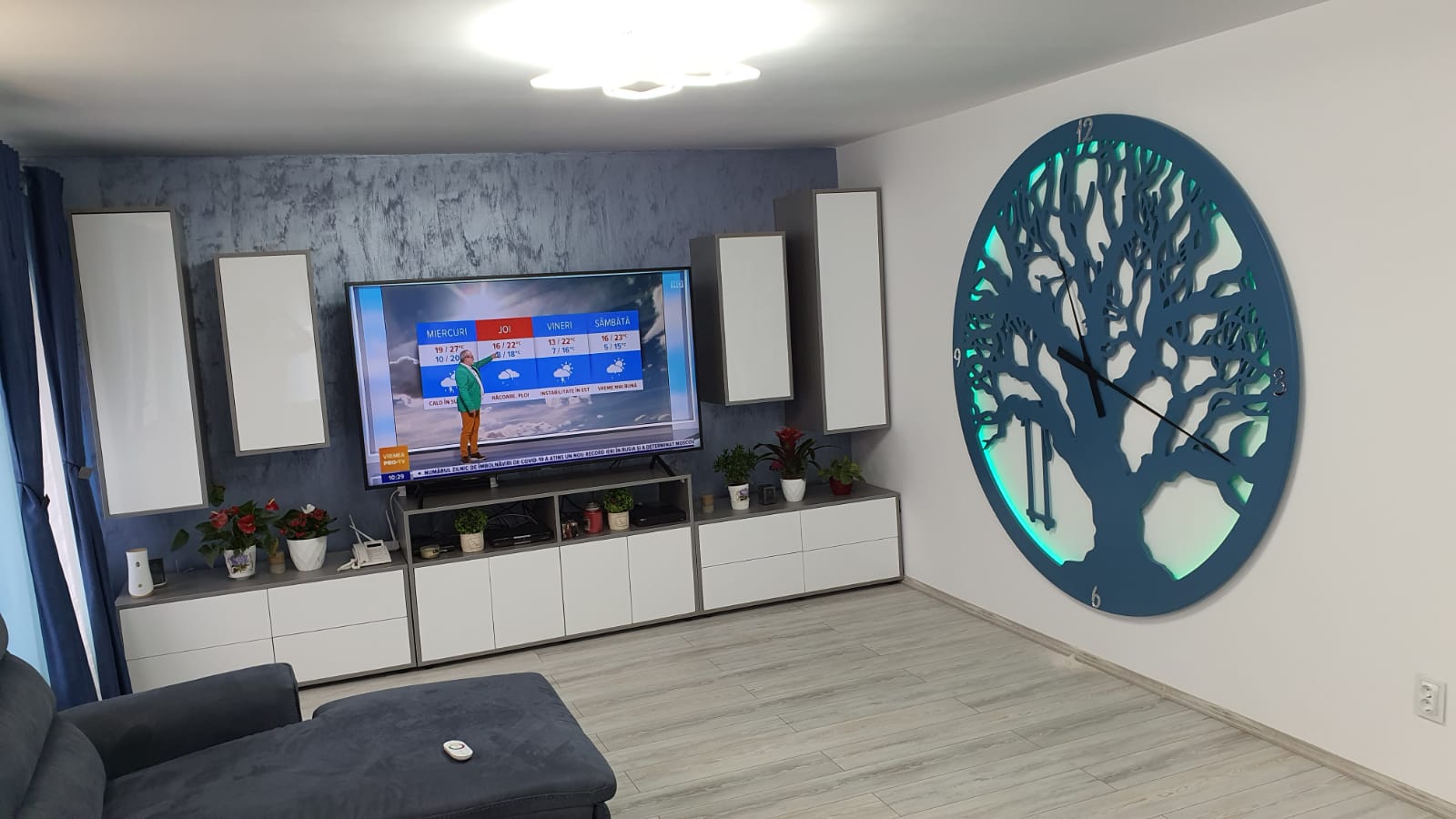 Ceas decorativ, iluminat, vopsit culoare speciala, din material MDF - Model Arbore cu leagan Dimensiuni: 100 cm x100 cm