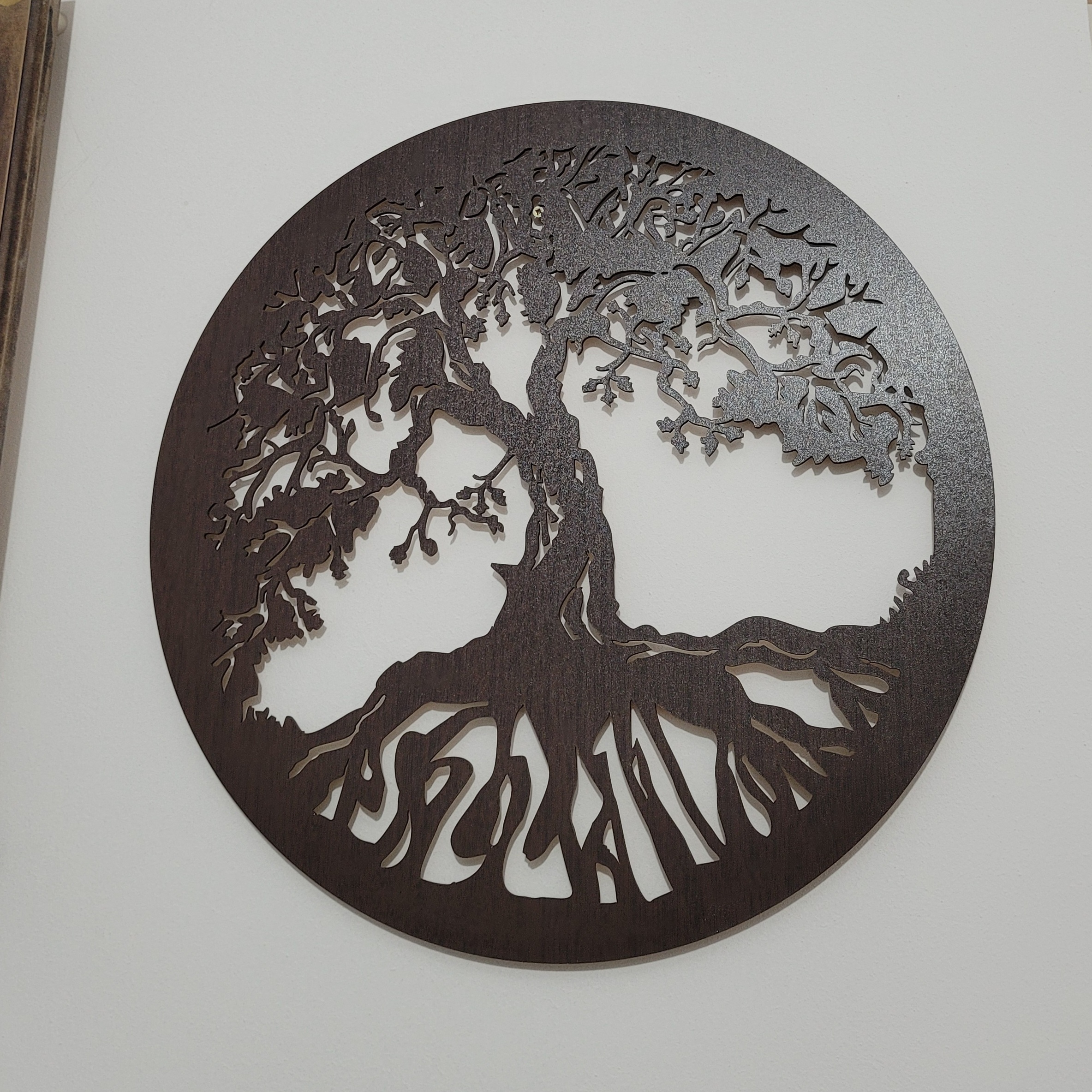 Decoratiune – "Copacul Vietii". Este realizata din material HDF, nuanta: Wenghe . Dimensiuni: 40cm x 40cm
