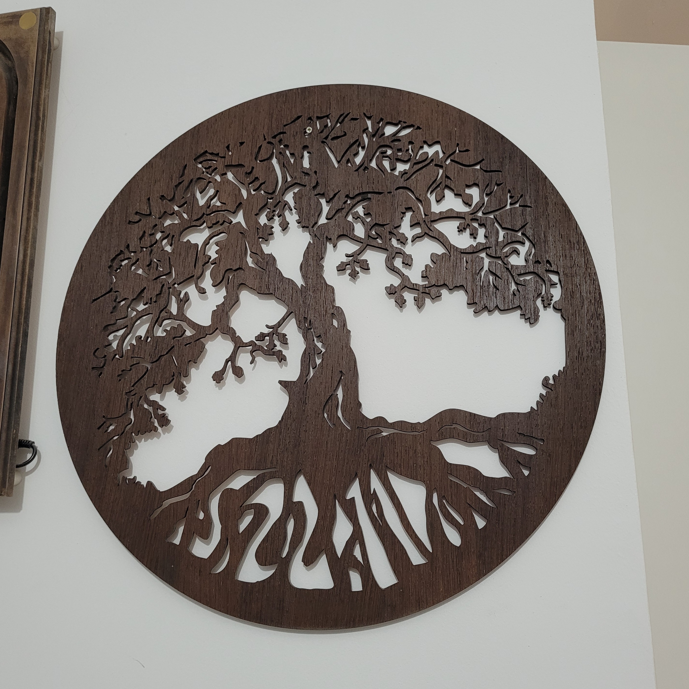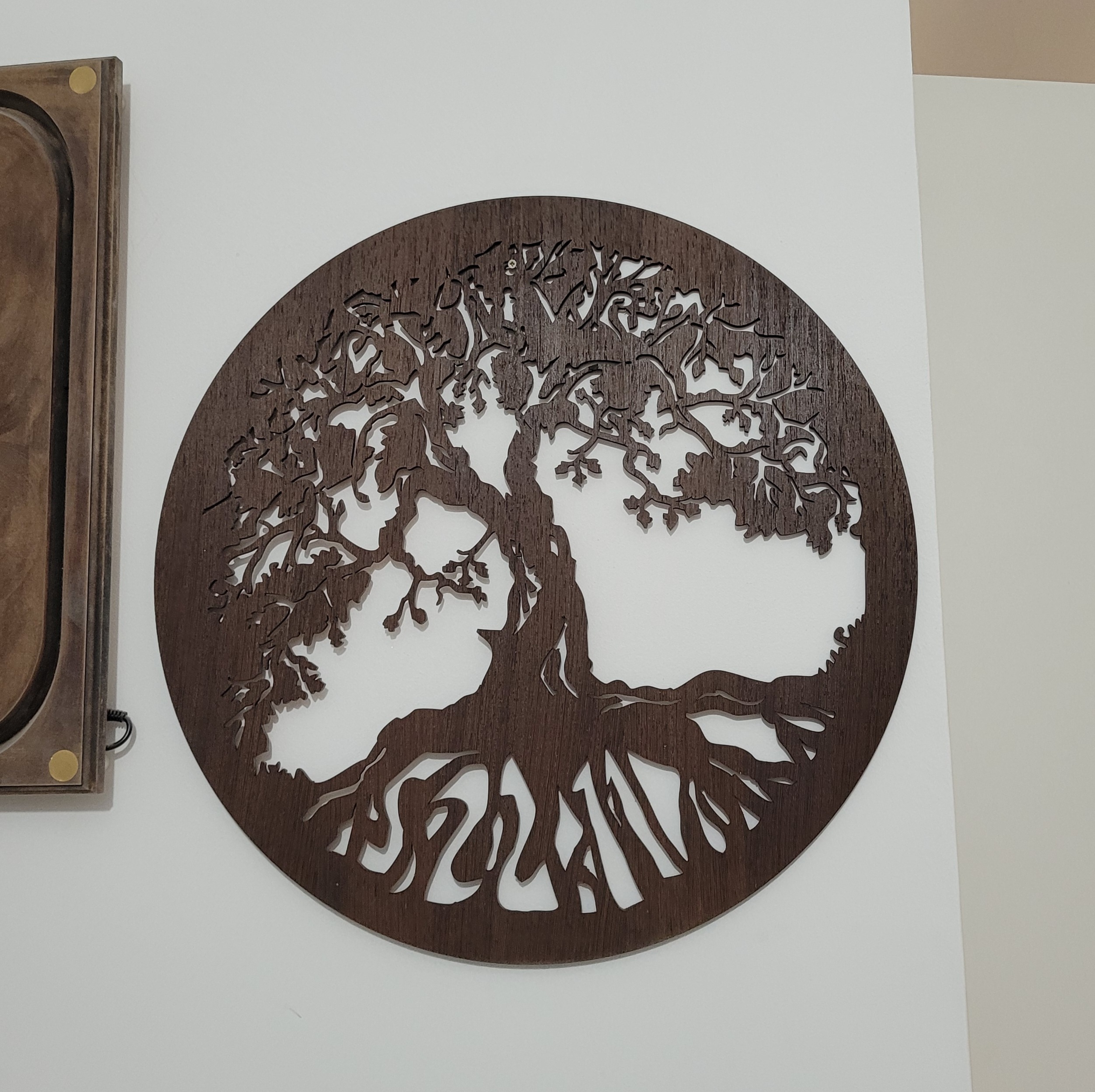 Decoratiune – "Copacul Vietii". Este realizata din material MDF Furniruit, nuanta: Wenghe. Dimensiuni: 50cm x 50cm