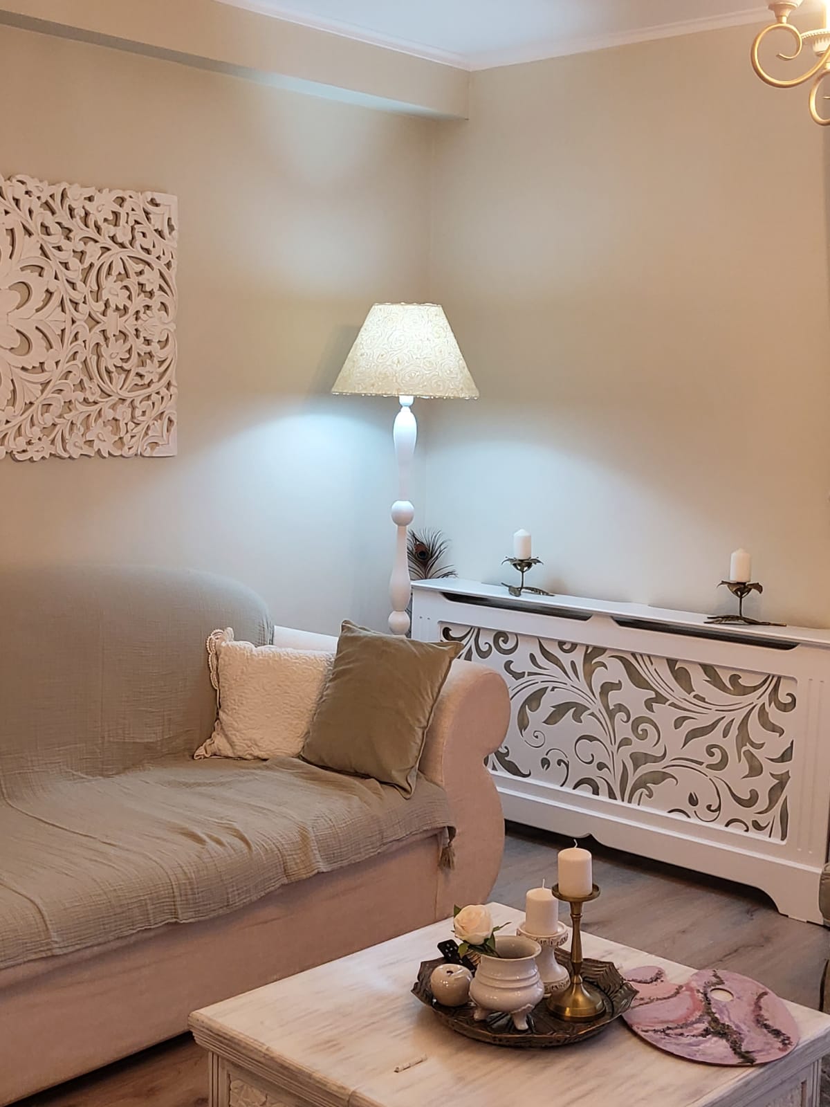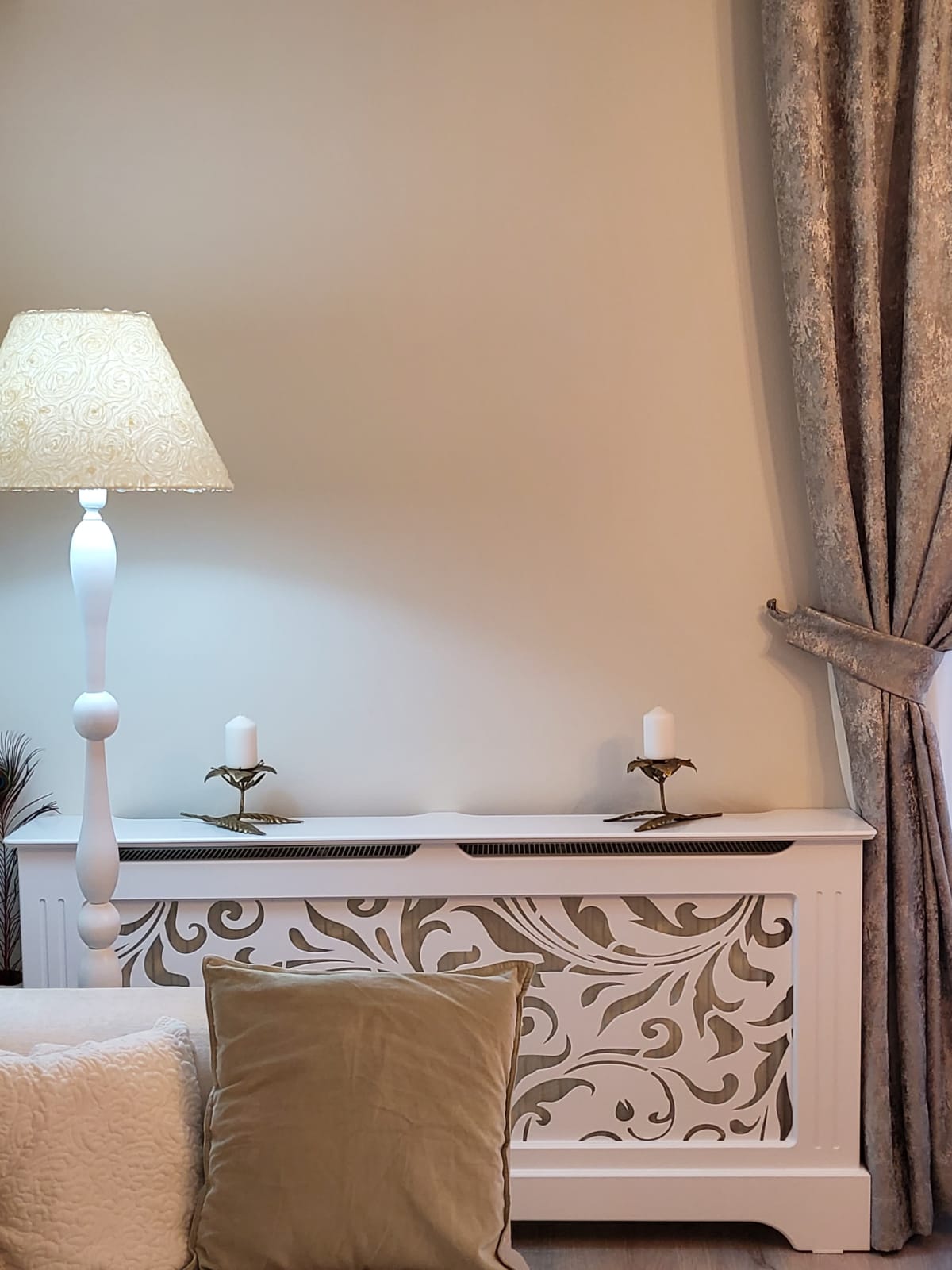 Masca de calorifer din MDF vopsit alb, culoare la alegere din catalogul de culori RAL. Extracost se va aplica pentru culorile speciale, cele metalizate, combinatiile de culori si MDF furniruit.