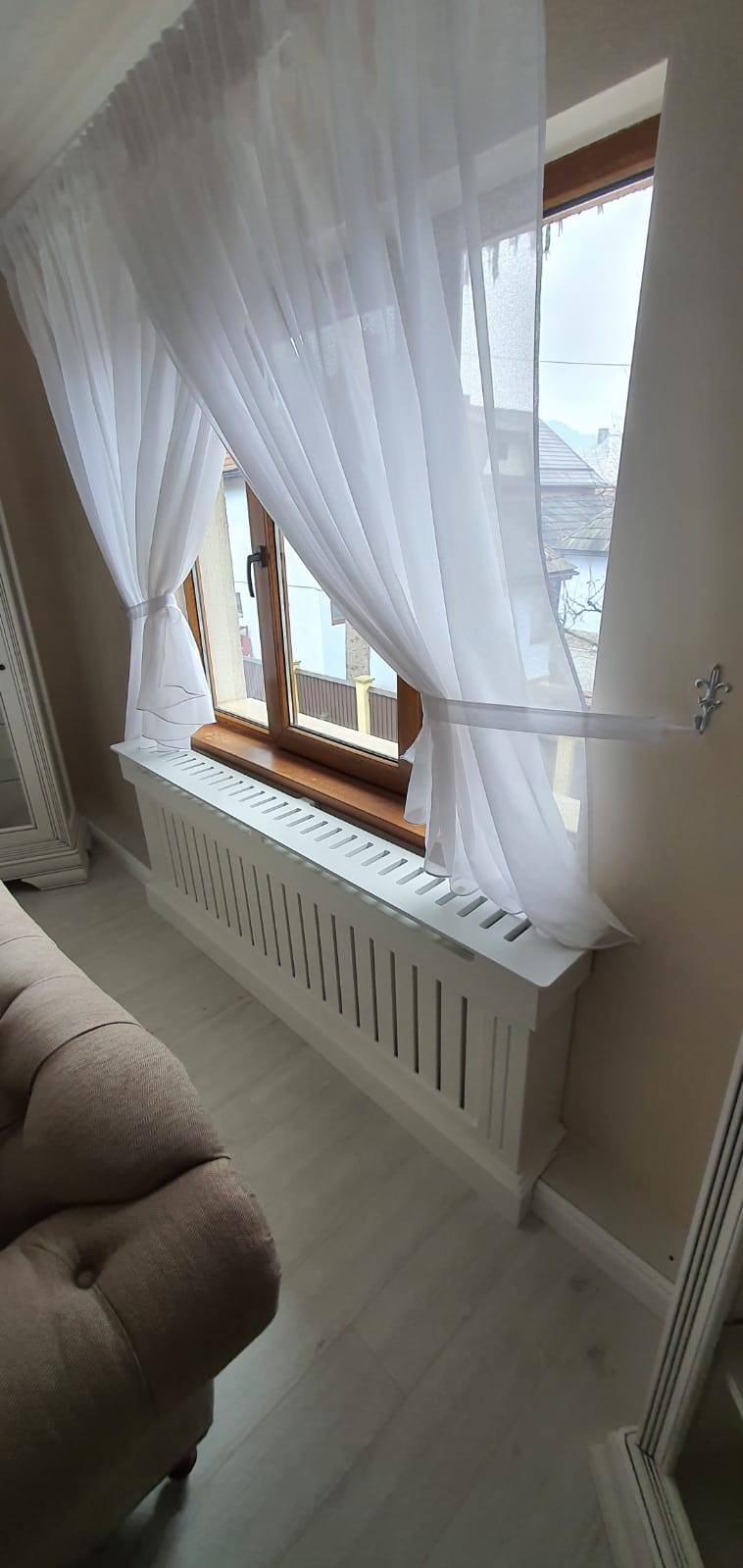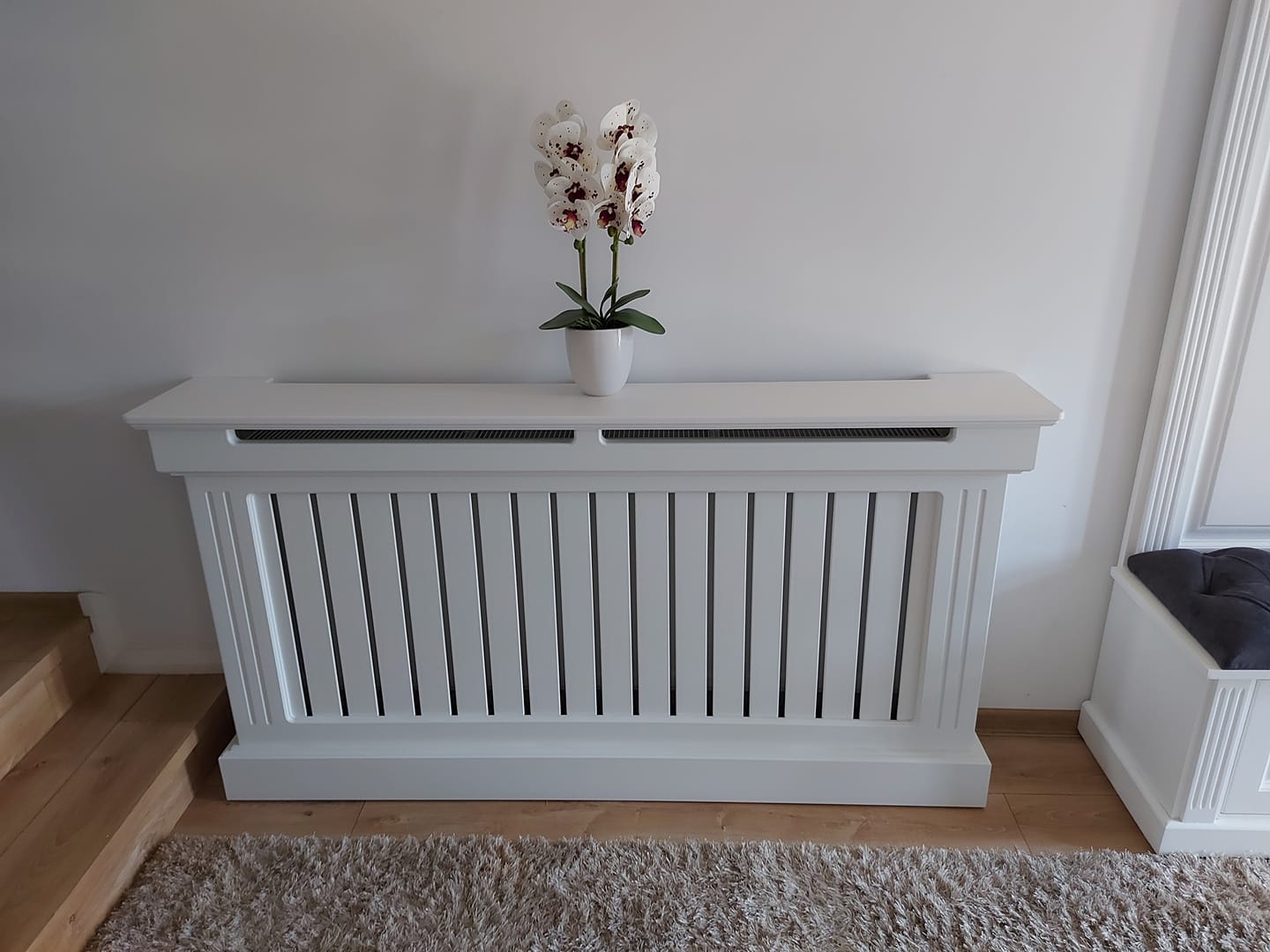 Masca de calorifer din MDF vopsit, culoare la alegere din catalogul de culori RAL. Extracost se va aplica pentru culorile speciale, metalizate, pentru combinatiile de culori si pentru MDF furniruit.
