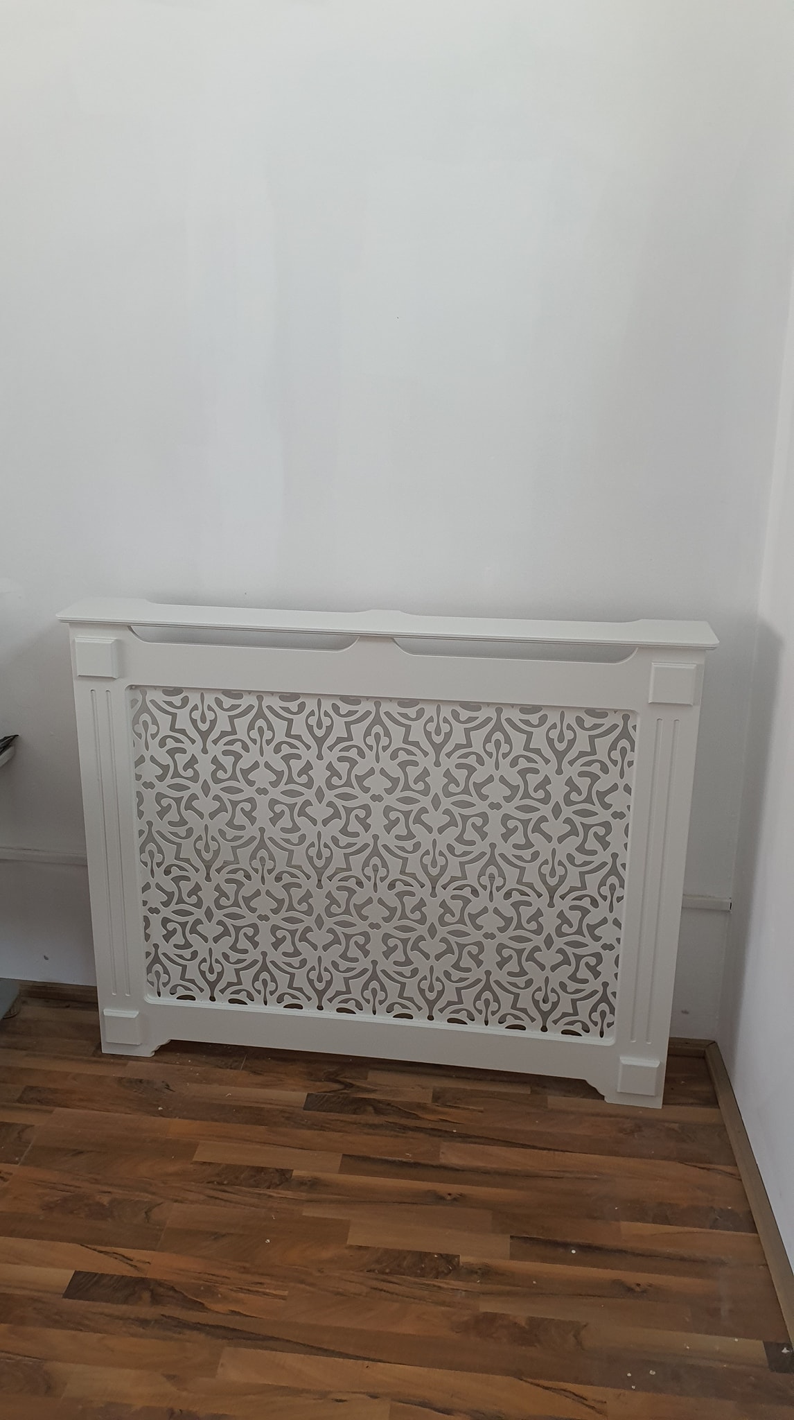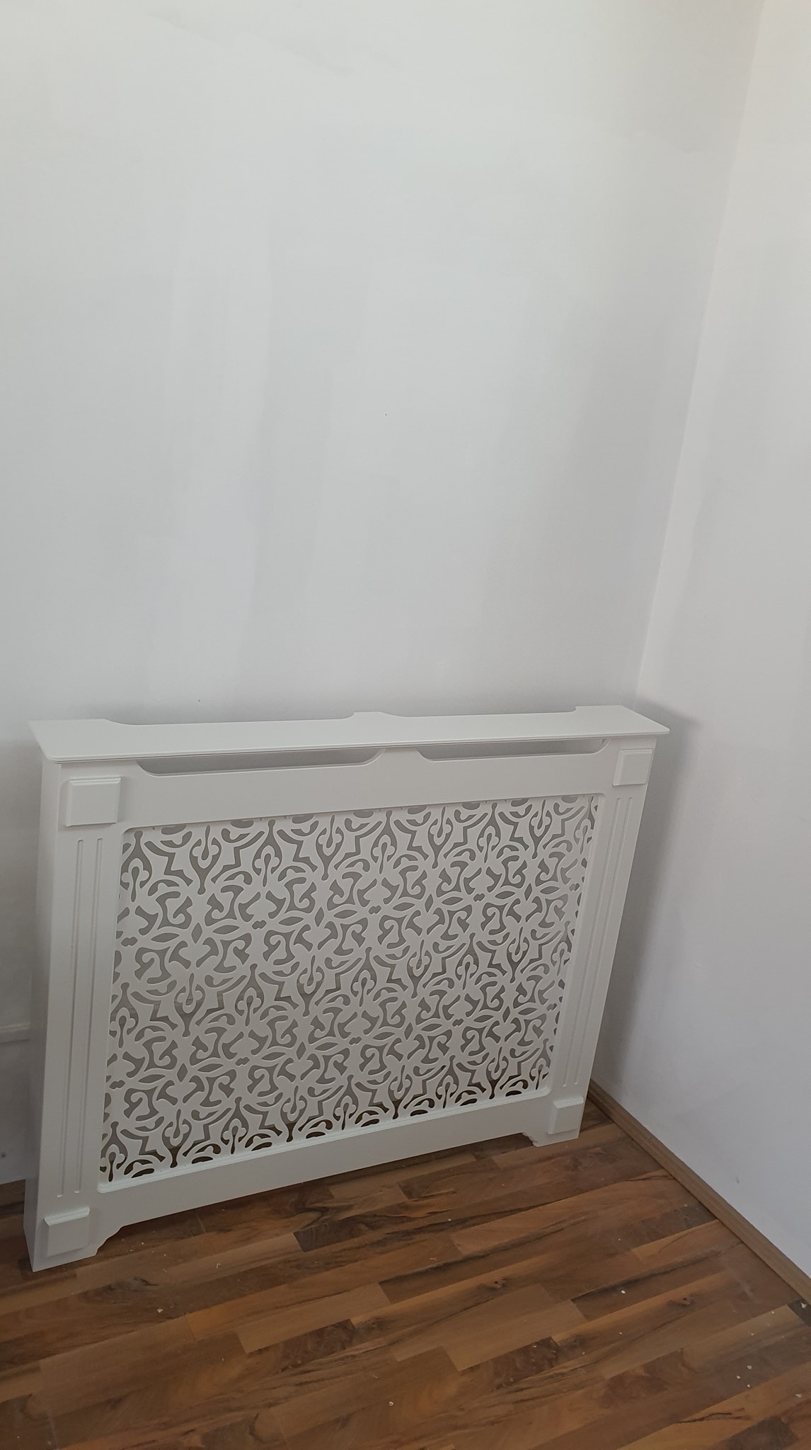 Masca de calorifer din material MDF vopsit, cu picior drept, cu patrate ornamentale si gravura laterala - Model India