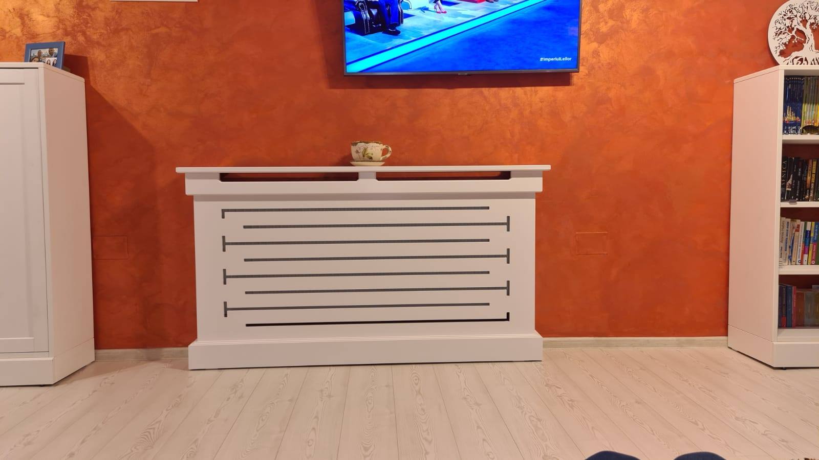 Masca de calorifer din MDF vopsit, culoare la alegere din paletarul RAL. Extracost se va aplica pentru culorile speciale, cele metalizate, combinatiile de culori si MDF furniruit.