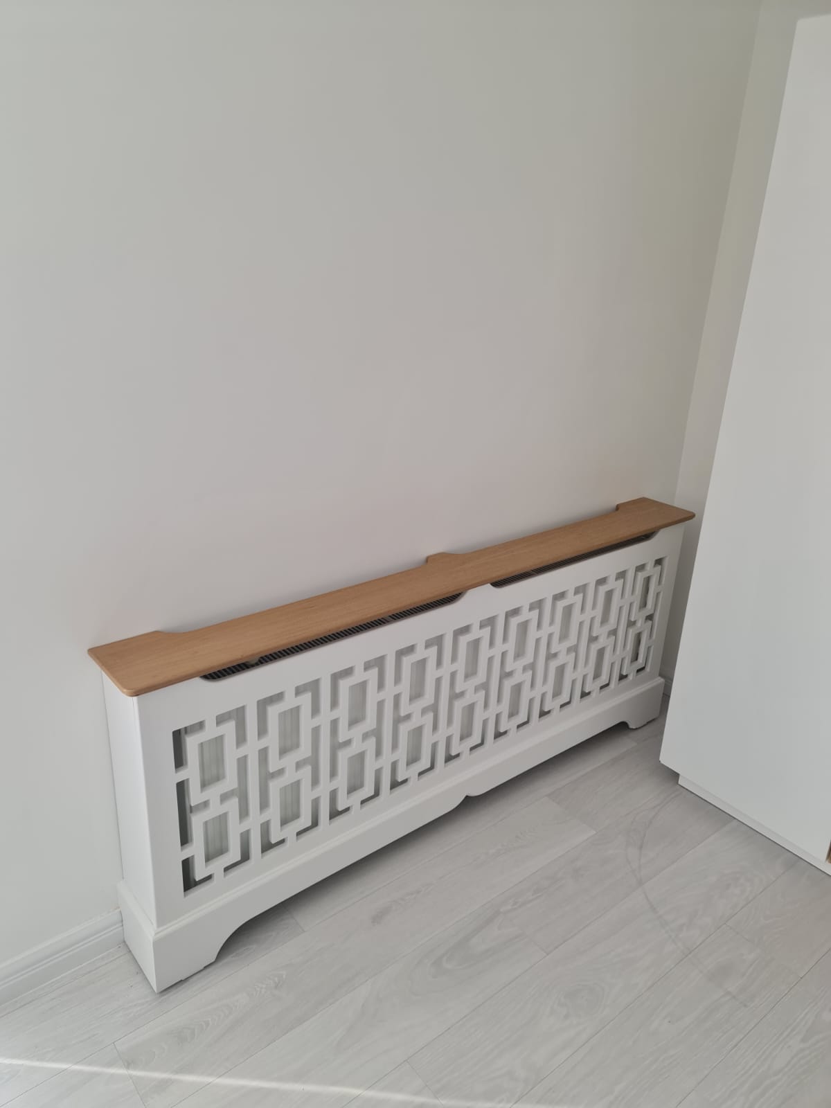 Masca de calorifer cu soclu simplu, din material MDF vopsit si polita din material MDF furniruit - Model Geometric