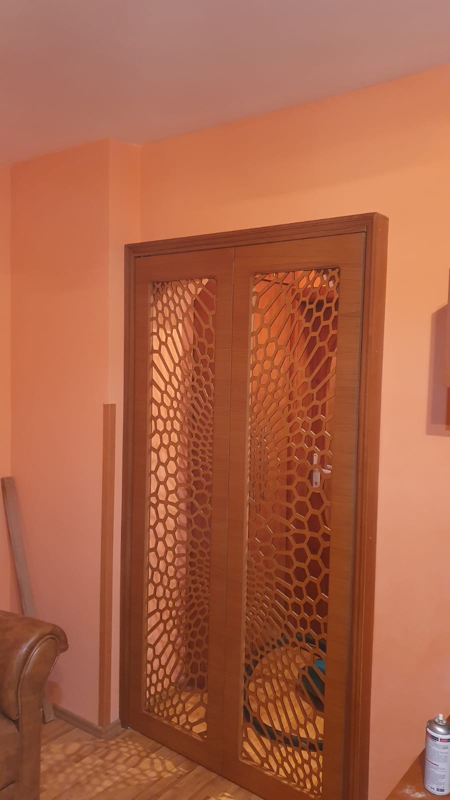Usi pliabile din MDF furniruit, vopsit cu bait, nuanta la alegere din paletarul RENNER.